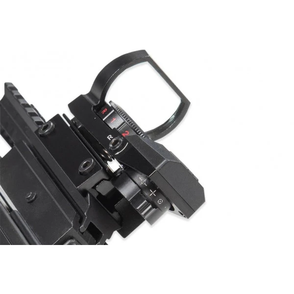 | Accessoires | 3 traits carbone, viseur holographique, lubrifiant à rail |